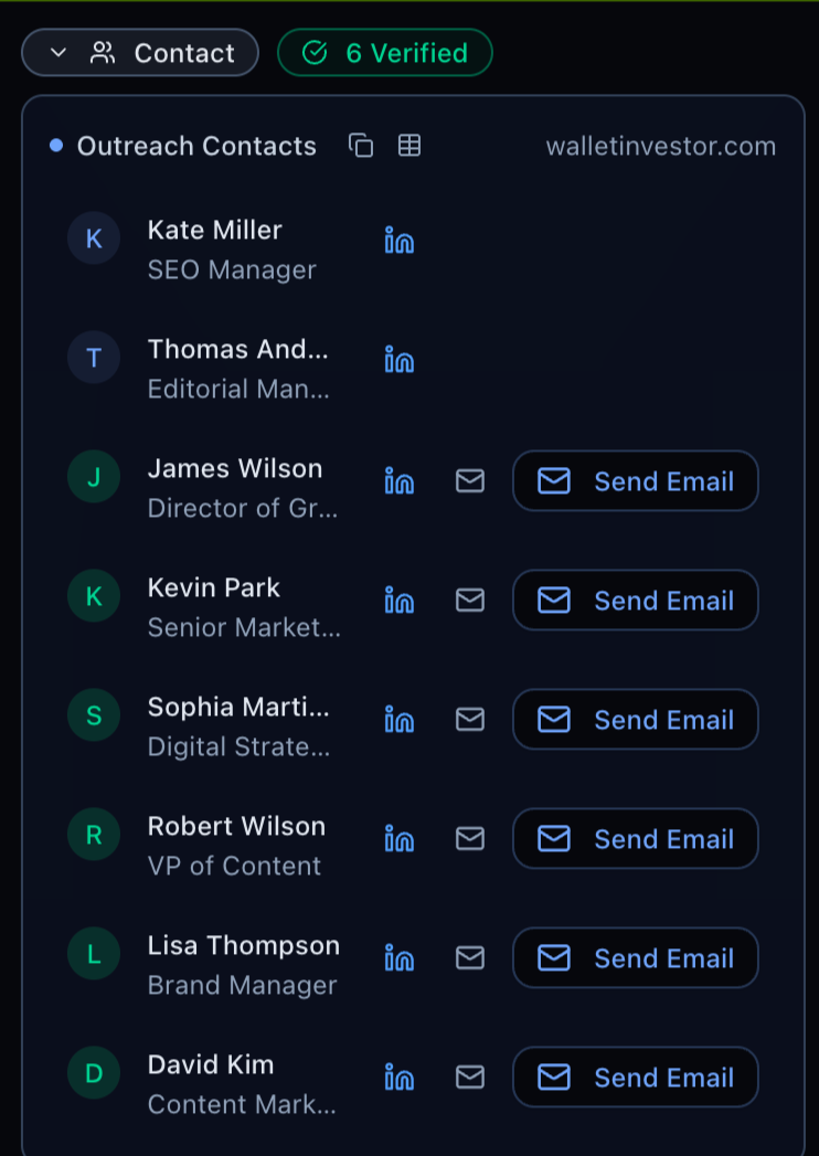 Once you know who to reach out to, you need a way to actually reach them. That means a verified email address, a LinkedIn profile, or ideally both.