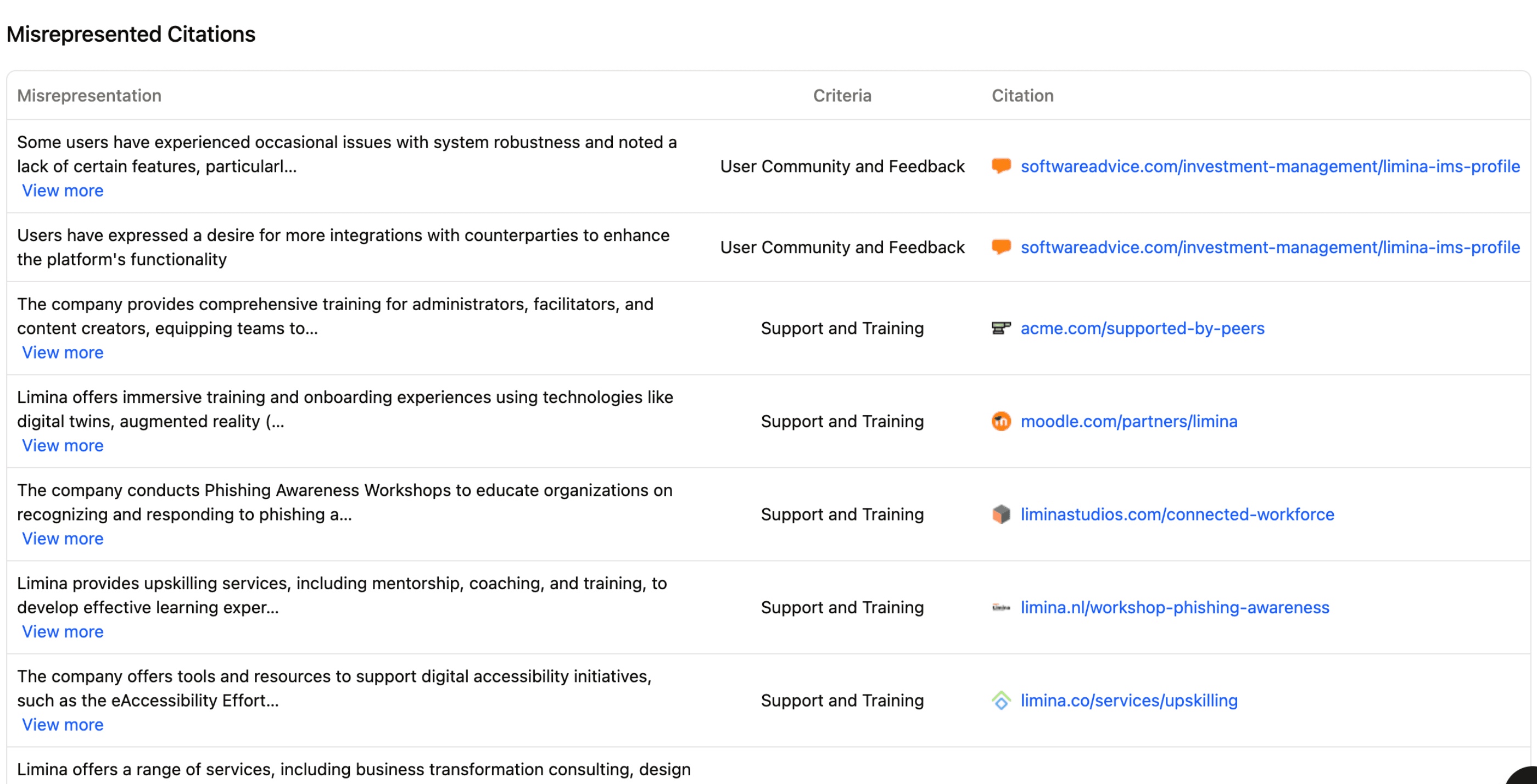 Exactly where each misrepresentation came from
