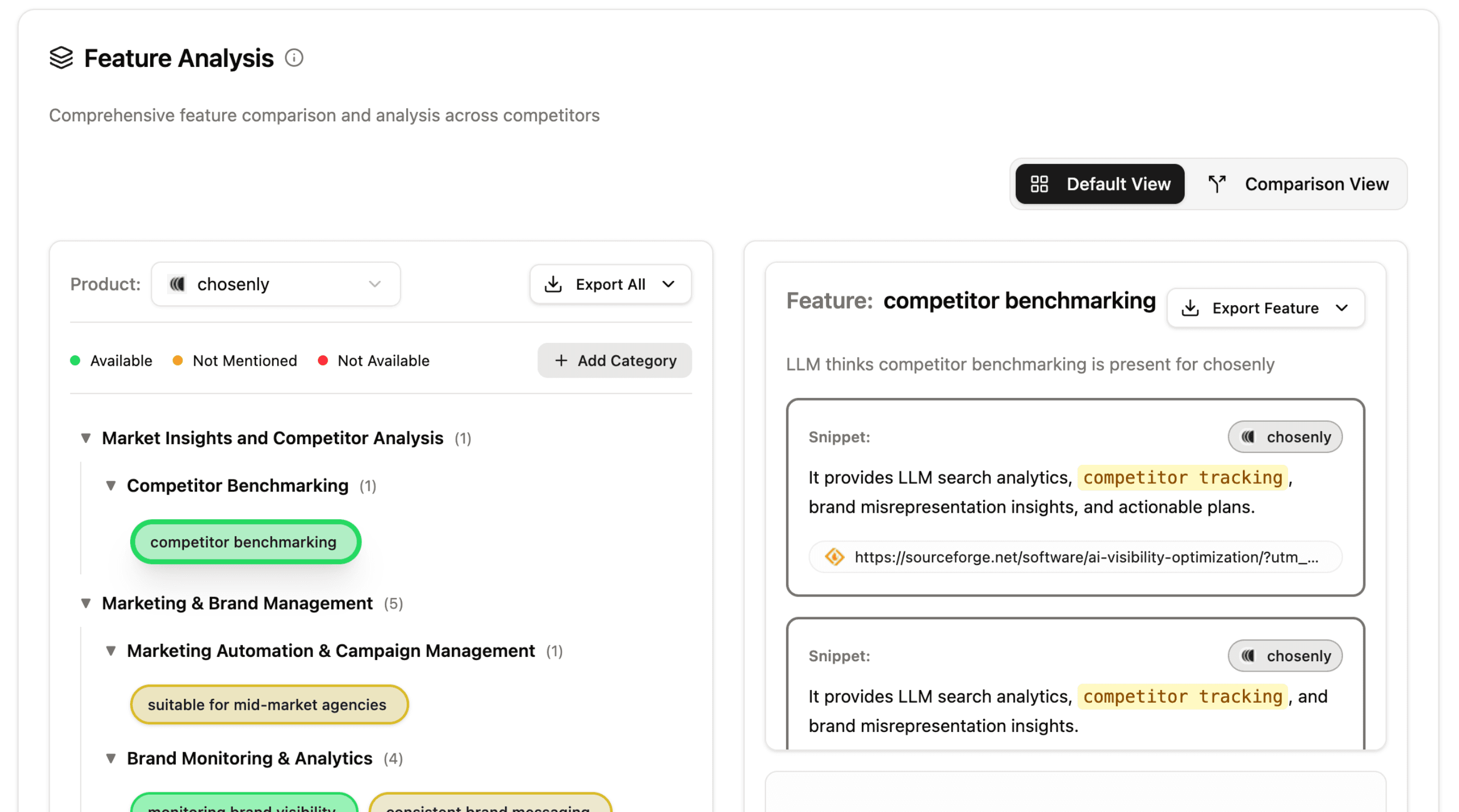 Chosenly maps how LLMs currently perceive you and why they might recommend a competitor over you.