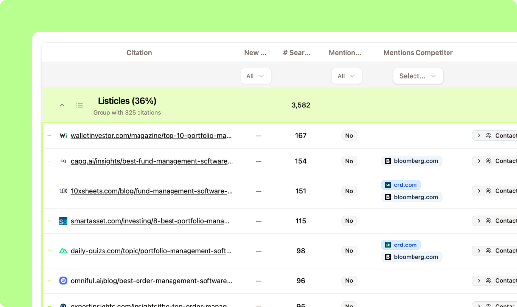 Chosenly uses proprietary AI visibility analysis to identify prompt gaps, brand misrepresentations, and missed coverage opportunities, then turns them into clear next steps for SEO, PR, and content teams.