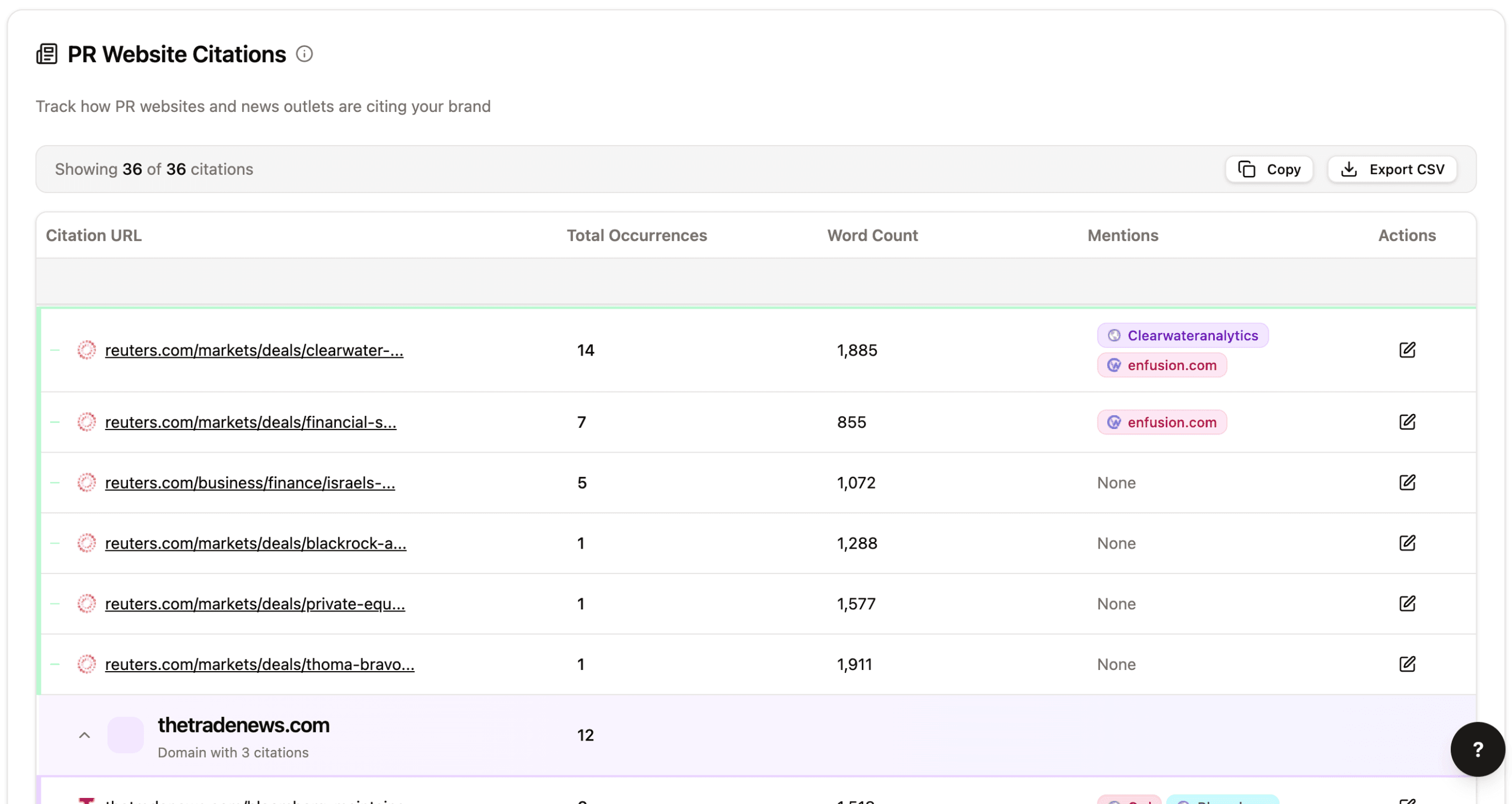 It shows you which publications AI consistently pulls from: